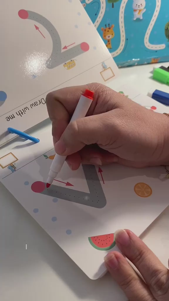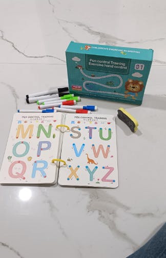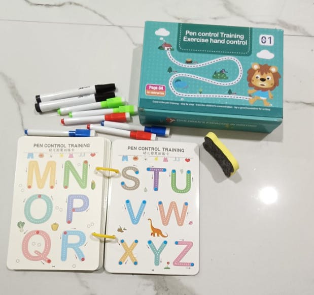 You’ll get the Pebble & Bloom Tracing Workbook, 6 fine-tip markers, 2 big markers, 4 buckle rings, and a duster everything your child needs for endless, mess-free learning.